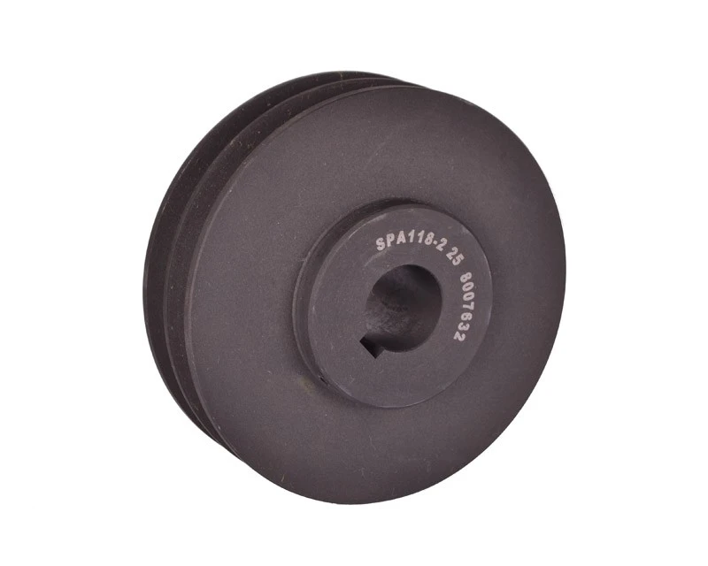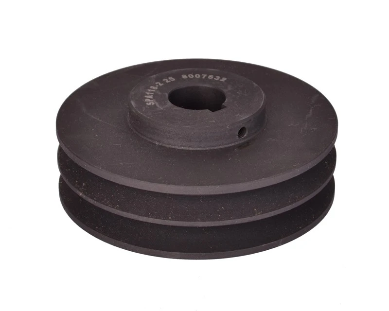 Kompakt remskive med 2 spor og en diameter på 118 mm. Husk at vælge hul størrelse til den rigtig akselstørrelse i boksen ved prisen.