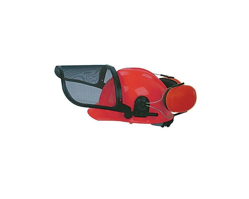 Billig sikkerhedshjelm med både visir og høreværn. Pasformen justeres nemt vha. spænde i nakken. Effektiv beskyttelse under arbejde med kædesave og lignende.