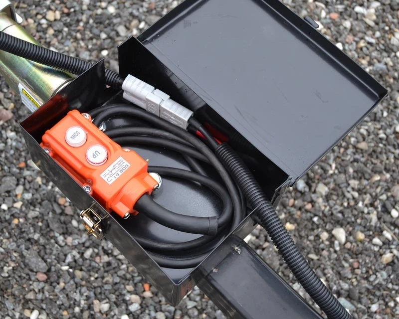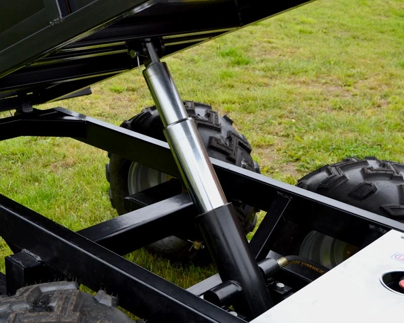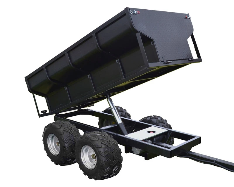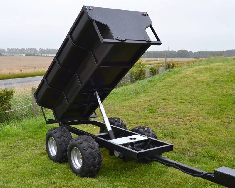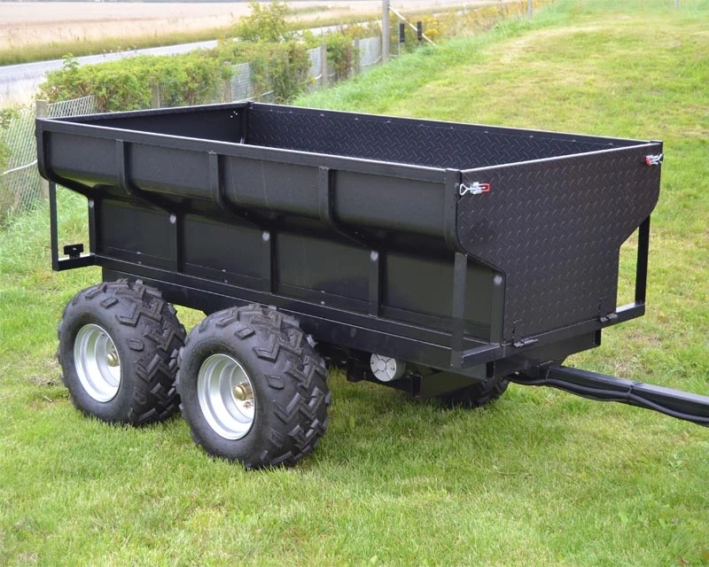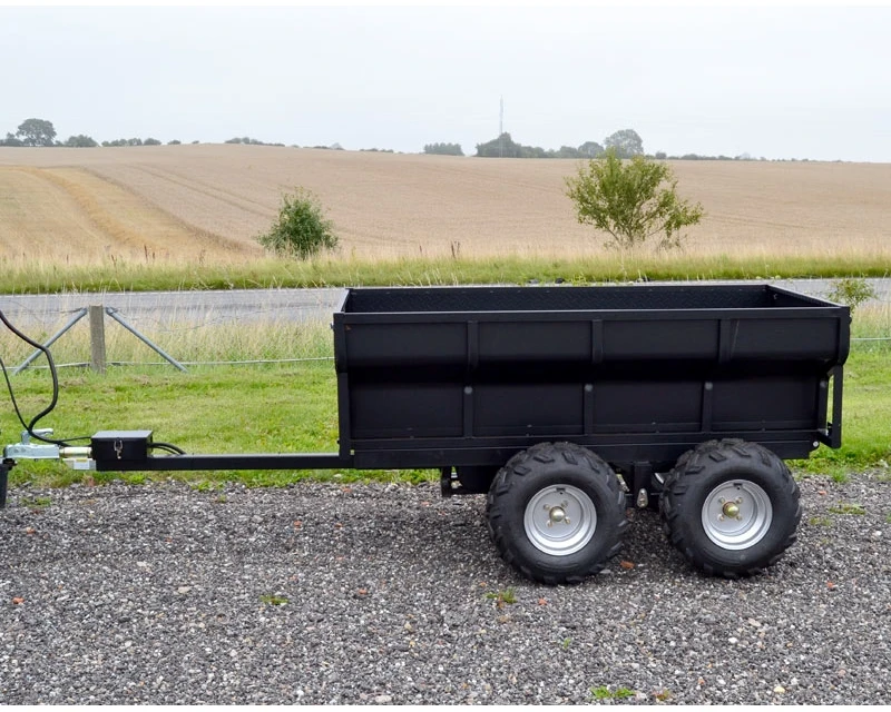 Skovvogn/skovtrailer med 1,2 m³ kasse, som kan tippes vha. hydraulikstempel. Kassen kan desuden åbnes i begge ender. Kræver strøm fra ATV, traktor eller lign. Rigtig mange anvendelsesmuligheder. Se video herunder. NB: støtteben følger ikke med.
