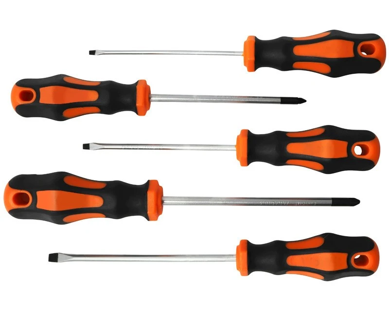 Skruetrækkersæt med 5 forskellige skruetrækkere i kraftigt CRV-stål.