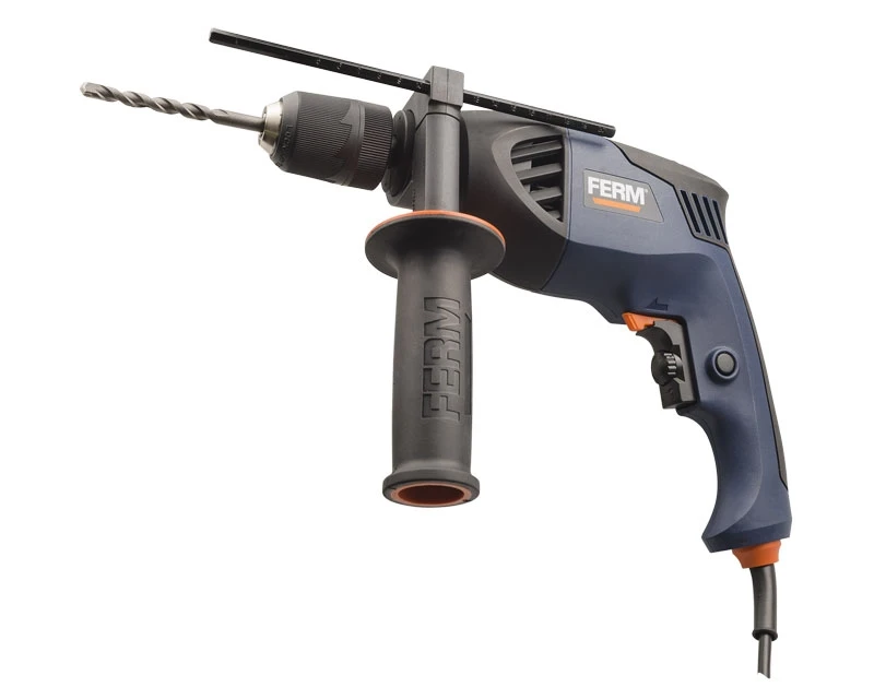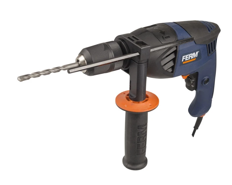 Slagboremaskine med variabel hastighed, soft-grip, sidehåndtag, dybdestop, selvspændende borepatron med lås. Her får man virkelig meget for pengene.