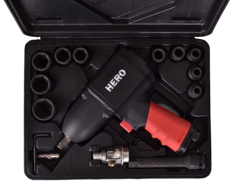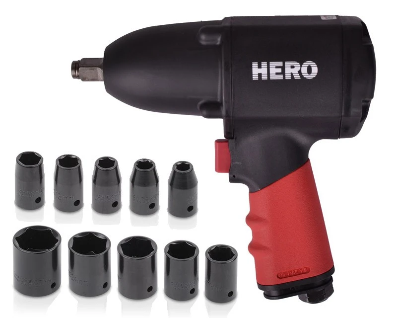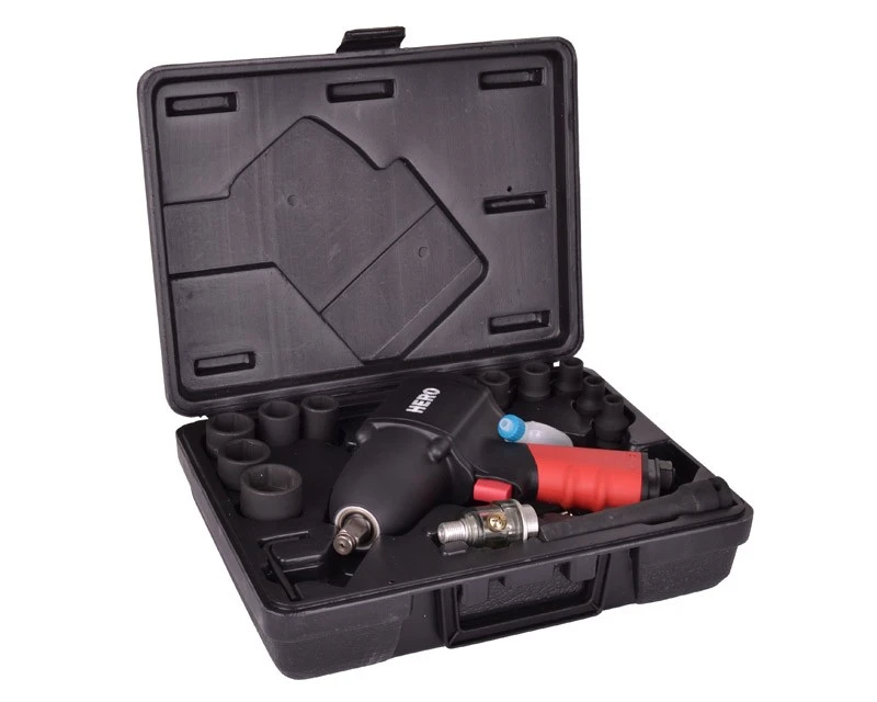God ½” luftslagnøgle med en slagstyrke op til 813 Nm og med masser af tilbehør. Slagnøglen har ergonomisk greb med soft-grip belægning og er desuden vibrationsfri og støjdæmpet. Leveres i kuffert med 10 toppe, 125 mm forlænger, nippel tågesmører og dunk til olie.
