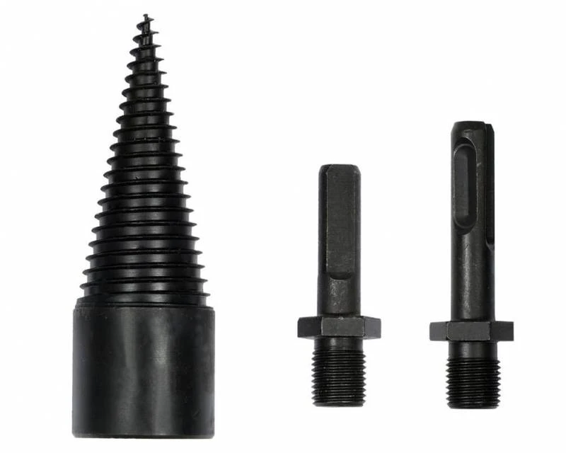 32 mm spiralbor / mini brændekløver til montering i boremaskine. En god løsning til kløvning af mindre stykker brænde.