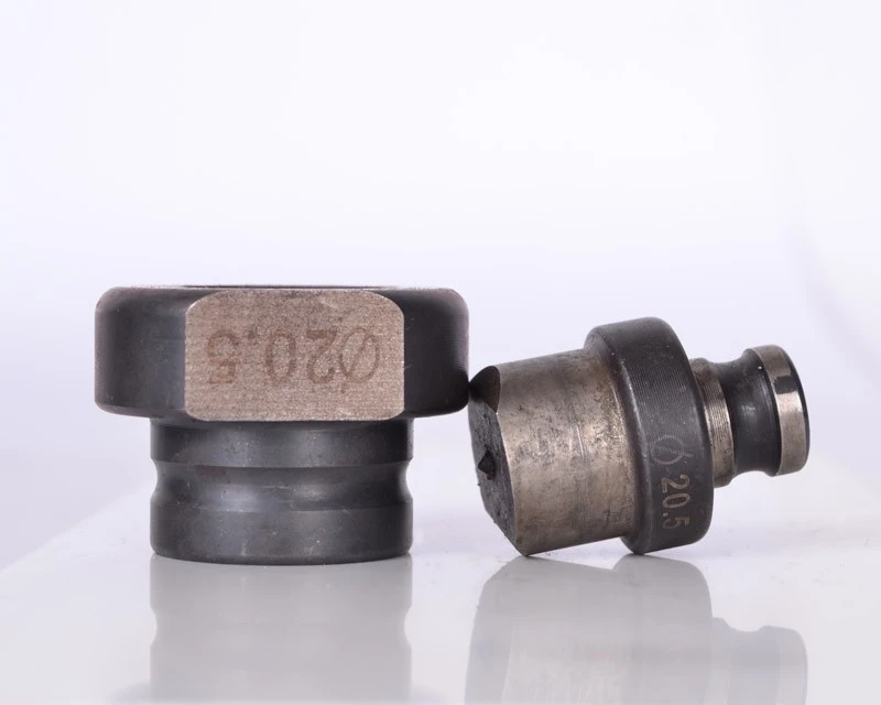 Stemplet består af over- og underdel, som passer til hydraulisk hulstanser nr. 8006299. Se også maskinen herunder