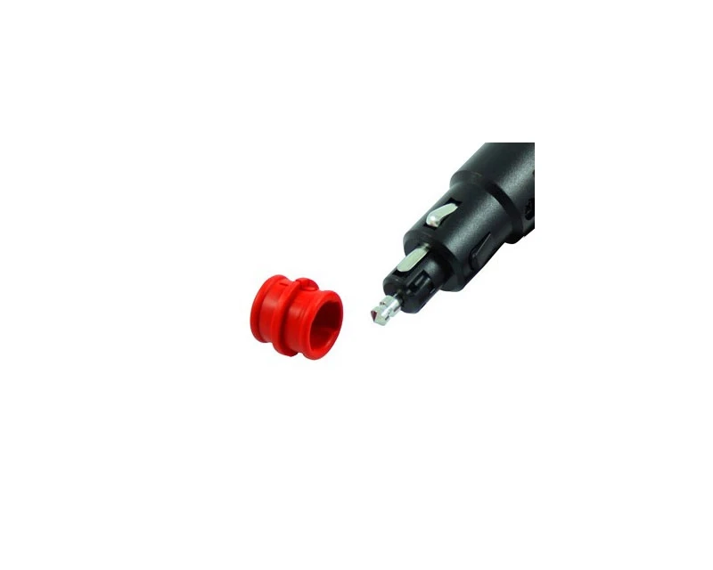 Løst stik til cigarettænder. 2 funktioner, idet den røde ring yderst kan afmonteres, så den passer til flere forskellige typer cigaretstik. Desuden indbygget 8 A sikring.