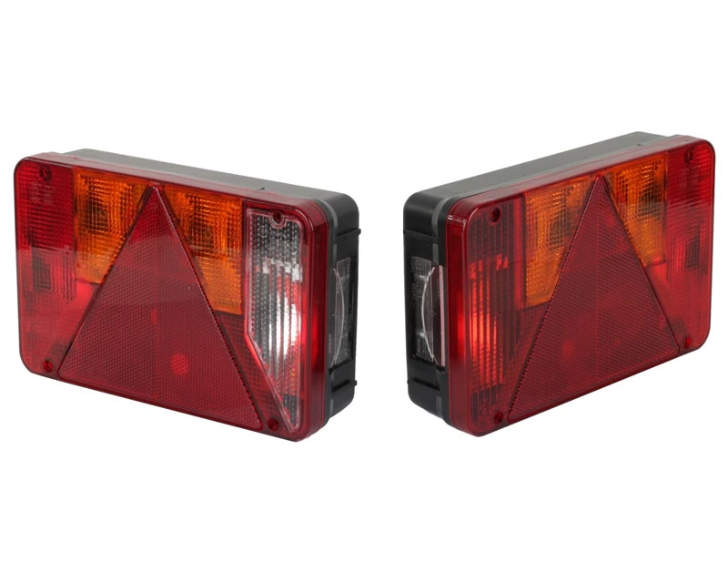 2 store baglygter – Sæt med 2 forskellige lygter til højre/venstre. Uden pærer, men forberedt til tågelys, bremselys og blinklys. Kraftig vandtæt box og god finish.