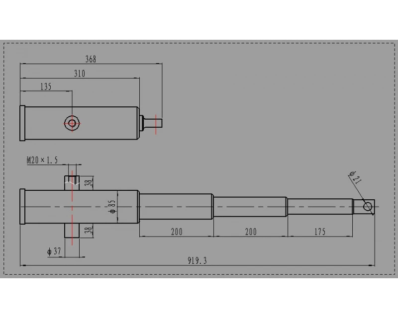 Teleskop stempel 310-920 mm med en løfteevne på ca. 1000 kg. Se billeder og tegning for detaljer.
