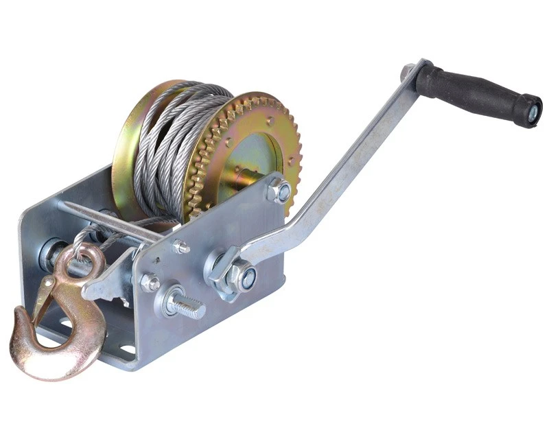 Manuelt trækspil til montering på fx. trailer, skovtrailer. En virkelig smart detalje er 2-vejs funktionen, som fungerer som bremse i begge retninger. Dette hånddrevne spil har desuden to position for placering af håndtag, så man kan få høj eller lav gearing.