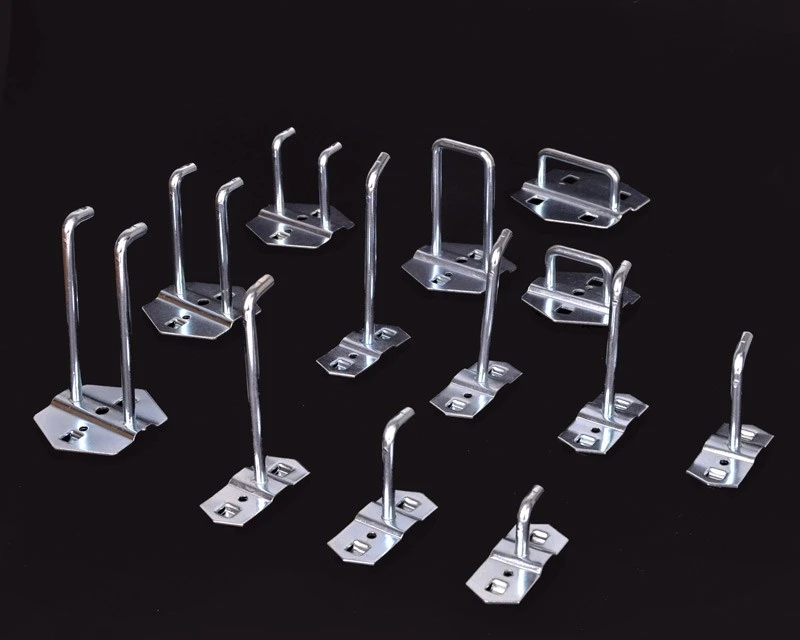 Leveres inkl. 13 forskellige kroge til ophæng på hulpladen: 3 dobbelt kroge, 3 bøjle kroge og 7 enkelte kroge – se også billeder.
