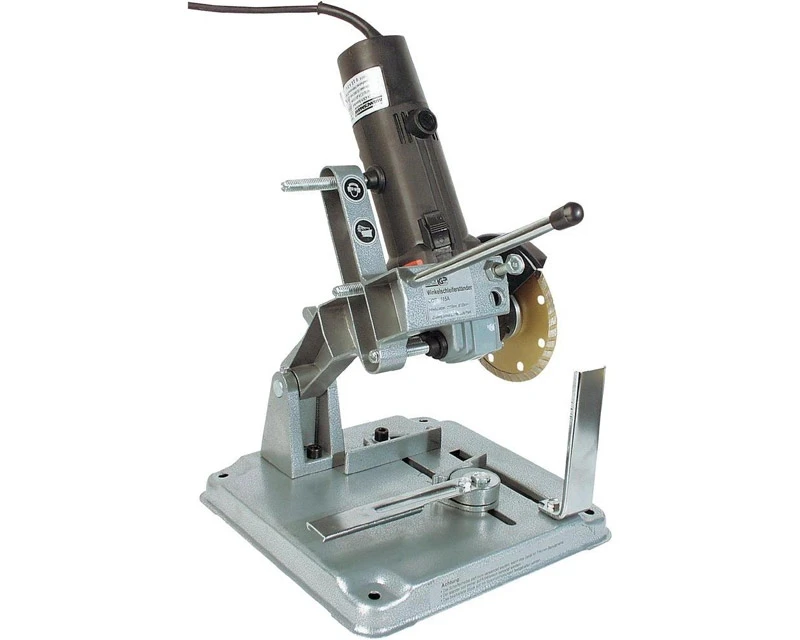 Med dette tyske kvalitets stativ kan du fastspænde din vinkelsliber og bruge den på samme måde som en afkorter. Stativet giver også mulighed for at skære i smig.