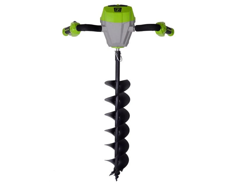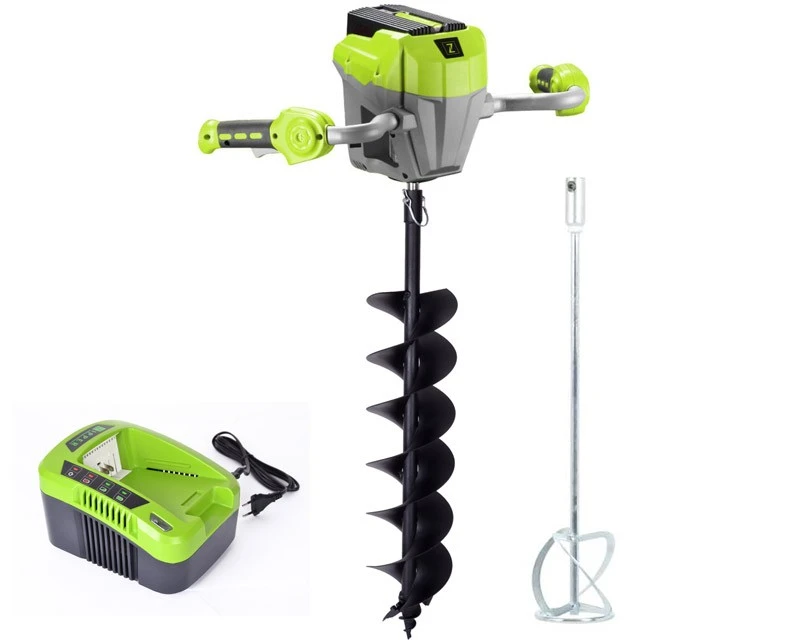 Kombinet løsning fra østrigske Zipper med batteridrevet pælebor og mørtelblander. En rigtig smart løsning, hvor elmotoren endda er udstyret med bakgear, og kører med en hastighed på 250 o/min. Med det kraftige batteri (40 volt – 4,0 Ah) kan denne maskine bore mange huller (eller blande en hel del mørtel), før den skal lades op.